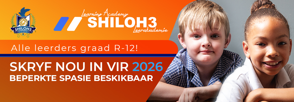 Welkom by die Shiloh3 familie, 'n plek waar kinders se natuurlike nuuskierigheid en verbeelding lei tot ondersoeke en gevolgtrekkings. Ons maak die leerproses lewendig deur ons Breinlyn/Caps geintegreerde kurrikulum asook ons remedierende onderrigstelsel. Deurlopende toetsing en assessering vind gereeld plaas en ons help elke leerders om op sy of haar eie pas te ontwikkel deur positiewe aanmoediging.